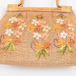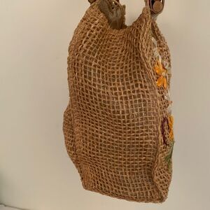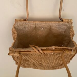 Boho Burlap Bamboo Flowers Large Shopper Tote Handbag Purse Satchel