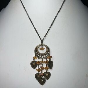 Boho Burnished Gold Tone And Bead Statement Necklace