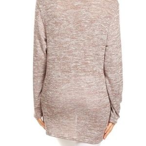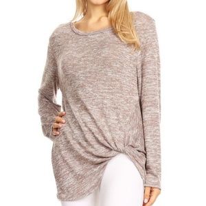 Loose fit, long sleeve sweater top with front twist knot and burnout details. Fashionable burnout fabric is loosely knit for a soft, comfortable fit that keeps you warm without making you hot. TAUPE