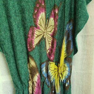 Boho Butterfly Mini Dress Green Felt Like Material Women Size M Looks Very Small