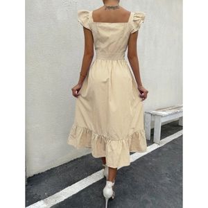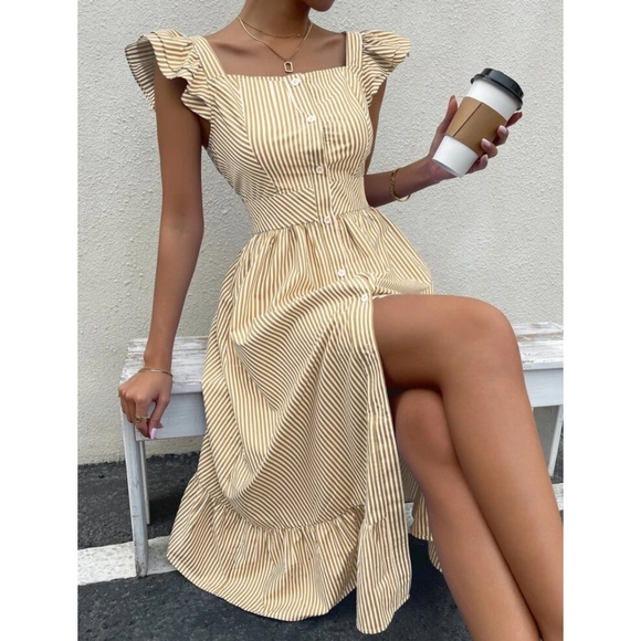 Boho Button Front Striped Ruffle Midi Dress