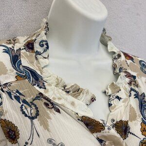 St Johns Bay Shirt Womens 4X Cream Floral Boho Button Front Ruffle Collar Top