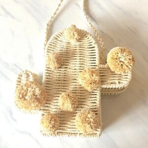 Boho Cactus Pom Basket Weaved Clutch or Handbag