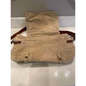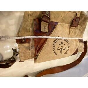 Boho Canvas & Leather Fleur De Lis Messenger Vintage Chic Look Crossbody Bag