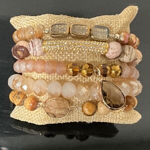 5 beautiful natural stone and beaded bracelets with stretch band.