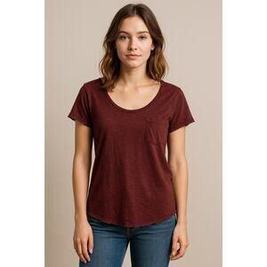 Boho Casual Pocket Tee Maroon Short Sleeve T-Shirt Me to We XS