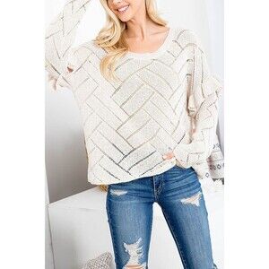Boho Causal Women's Sweatshirt Beige Solid Oversize Size M/L Trendy Factory Pl