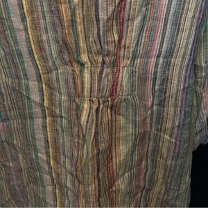 Boho Chic 100% Linen Lined Striped Multicolor Women's Jacket with 3/4 Sleeve