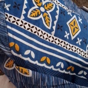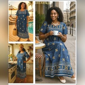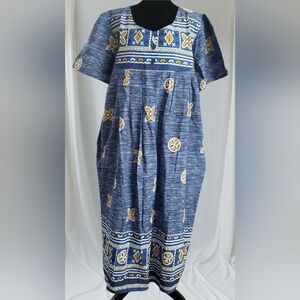 Beautiful Oversized Summer Cotton Pockets New With Tags Plussize Women's Size 2X Blue Gold Geometric Floral Aztec Weekend Brunch Resort Vacation Cruise Pool Beach Cover-up Packable Washable Business Casual Slip On Art To Wear South Western Native Bohemian Lagenlook Festival Indie Atleasure 100% Cotton Lagenlook Tribal African Versatile Date Night Wedding Guest Garden Party Business Casual