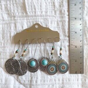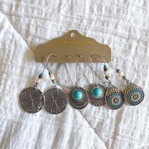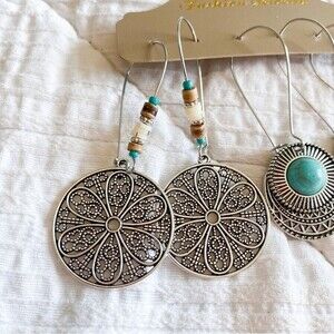 This listing is for one set of three (3) pairs of Antique Silver drop earrings.