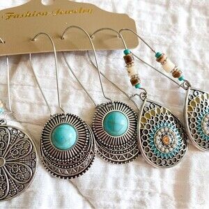Boho Chic Antique Silver Turquoise Drop Dangle Earrings