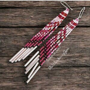 Boho Chic Beaded Fringe Cascade Dangle Earrings, Plum, Fairy Wing Earrings 5"