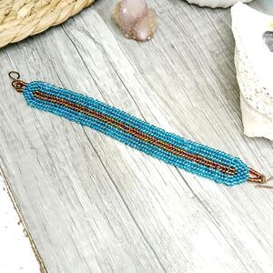 Boho Chic Beaded Herringbone Bracelet, Seed Bead Jewelry, 7.25"