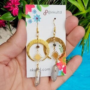 🆕️Boho Chic Celestial Amber Quartz Goddess Sun Crescent Moon Drop Earrings 🌙✨