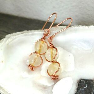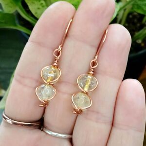 Boho Chic Citrine Crystal Dangle Earrings, Copper Gemstone Jewelry 1.5"
