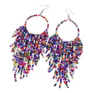 Boho Chic Colorful Fashion Statement Beaded French Wire Closure Dangle Earrings
