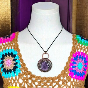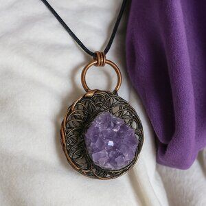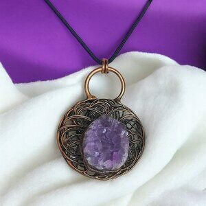 🆕 Boho Chic Copper Wire Wrapped Amethyst Crystal Artisan Pendant Necklace 🌿✨