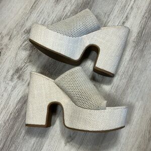 Step up your style with these chic cream platform slide sandals. Perfect for any occasion, these shoes offer both comfort and elegance. These are a heavy sole platform slip-on type slide sandals. These are very comfortable