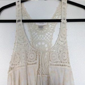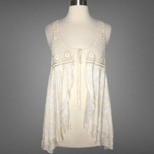 Kenar Ivory Boho Crochet Detail Tie Front Waterfall Vest Top. Gently used. Super cute!