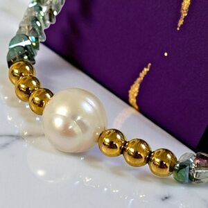 🆕️ Boho Chic Crystal & Freshwater Pearl Necklace With Gold Plated Bead Accent
