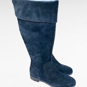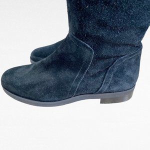 Boho Chic Cuffed Black Suede 16” Boots Comfy 1” Heel Made in Italy Sz 40 9.5