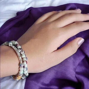 Elevate your style with this stunning handcrafted double loop stretchy bracelet! Perfect for adding a touch of boho chic to any outfit, this unique piece features earthy tones that complement any wardrobe. Each bead is meticulously crafted and strung together to create a versatile accessory that can be worn alone or stacked with other bracelets. 🌸✨ - Handmade with love - Earth tone beads for a natural look - Boho chic style perfect for any occasion - Stretchy design to fit all wrists comfortably ⭐Measurements: 14" with 5mm beads ⭐ Materials: Plastic colored beads, wooden beads, silver plated alloy. Add this beautiful bracelet to your collection today and embrace the effortless boho chic vibe! 🌿💫 🎁Includes jewelry gift box or jewelry storage pouch 🎁 🌟Fast Shipping 📦 | 5-Star Rated ⭐ | Professional Seller ✨ 🛍️Don't forget to bundle items and save💰! Boho chic bracelet, double loop bracelet, stretchy bracelet, beaded bracelet, handmade bracelet, earth tones jewelry, bohemian style bracelet, boho fashion, bohemian accessories, statement bracelet, beaded jewelry, wood bead bracelet, silver accents bracelet, adjustable bracelet, gift for her, trendy bracelet, casual jewelry, stackable bracelets, layering bracelet, artisanal jewelry, nature inspired jewelry, rustic bracelet, vintage-inspired bracelet, fall fashion accessories, winter jewelry trends, earthy tones, minimalist jewelry, aesthetic jewelry, yoga bracelet, meditation bracelet, neutral tone jewelry, festival