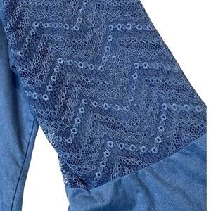 Boho Chic Faux Suede Top Womens XL Lace Feminine Cell Sleeve Office Casual Flowy