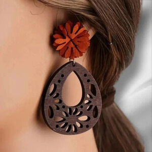 🆕️ Boho Chic Floral Trendy Eco-friendly Wooden Flower Cottagecore Earrings