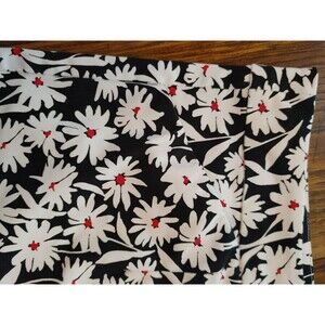 Stylish black and white floral ankle-length pants from Appleseed's. Featuring a convenient zip and button closure, these pants are perfect for travel and casual occasions. The cotton blend material and machine washable garment care make them comfortable and easy to maintain.