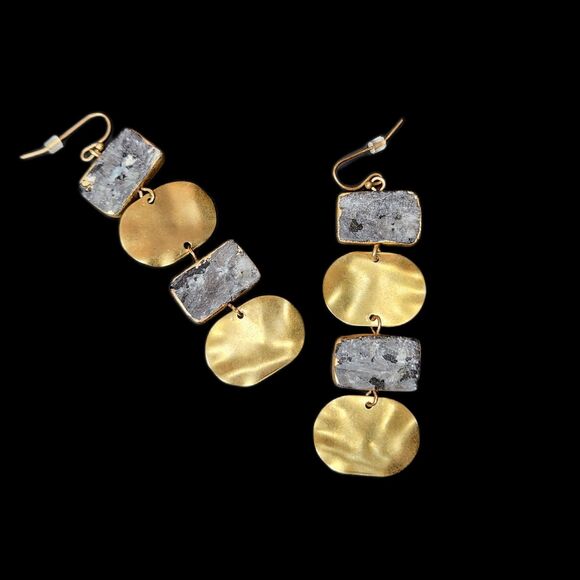 Boho Chic Gold & Gray Stone Dangle Earrings Geometric Modern Statement Luxury