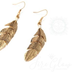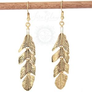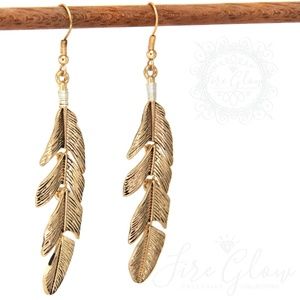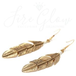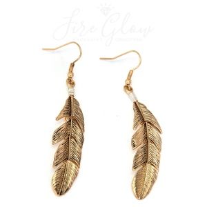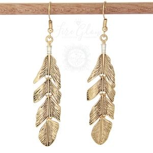 Boho Chic Gold Tone Dangling Feather Earrings