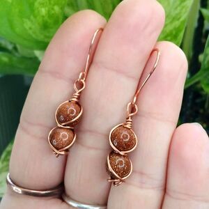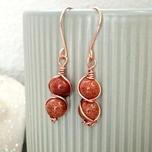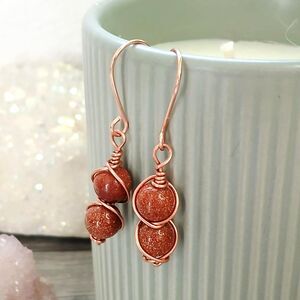Boho Chic Goldstone Beaded Dangle Earrings, Copper Jewelry 1.5"