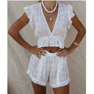 Boho Chic Gypsy Eyelet White Shorts SEt