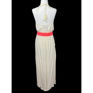 Boho Chic Halter Maxi Dress Coral Ivory Crochet Lace Dainty Hooligan Womens M