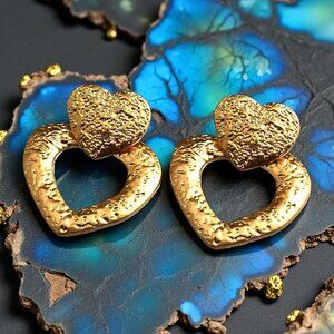 Romantic heart earrings | Gold statement earrings | Boho chic jewelry | Double heart textured earrings | Lightweight hypoallergenic earrings | 18K gold plated stainless steel | Date night jewelry | Modern bold earrings | Gift for her | Party statement earrings | Golden heart drops | Trendy boho earrings | Everyday chic jewelry | Valentineโs gift idea | Unique textured earrings | Love heart earrings | NKULTD boutique jewelry | Festival boho glam earrings | Womenโs gold fashion earrings | Artisan inspired statement jewelry | Glamorous gold earrings | Textured fashion earrings | Chunky gold statement jewelry | Chic heart design earrings | Boutique gold jewelry gift | Trending fashion accessories | Bold