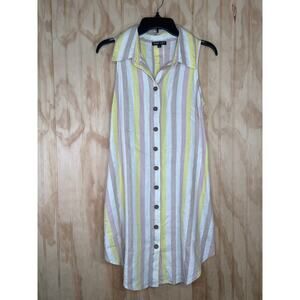 Boho Chic Linen Nylon Blend Striped Dress with Side Pockets – Size XS