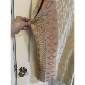 Add a touch of bohemian charm to your wardrobe with this Mossimo cardigan from Boho Chic Mission Supply Co. The geometric pattern and beige color make it a versatile piece that can be dressed up or down. The short sleeves and M size make it perfect for warm weather. This pre-owned sweater is in excellent used condition and ready to be worn and loved. It's the perfect addition to any bohemian-themed outfit.