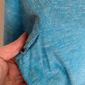 There is a spot on the arm that the outside stitch has come off. It is about an inch long. It can be easily fixed.