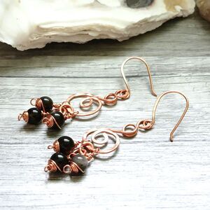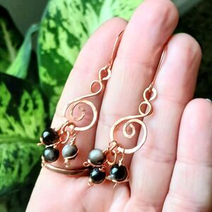 Boho Chic Obsidian Crystal Dangle Earrings, Hammered Copper Gemstone Jewelry