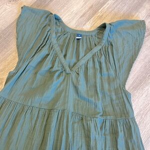 Effortlessly chic and versatile, this olive green flutter sleeve babydoll dress is the perfect blend of comfort and feminine charm. Crafted from 100% cotton, it features a breezy tiered silhouette with a flattering V-neckline that makes it ideal for warm-weather days, layered looks, or casual outings.