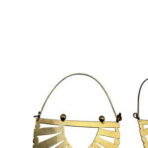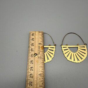 Boho Chic Openwork Fan Hoop Earrings Gold Tone Geometric Tribal Statement