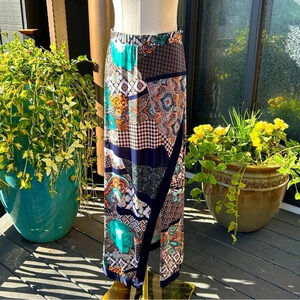 Boho Chic Patchwork Colorful Satin Feel Mixed Print Long Maxi Skirt / Women’s M