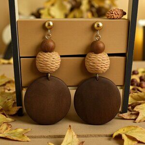 Elevate your accessory game with these gorgeous earrings! Featuring natural wood, woven rattan, and gold-plated alloy accents, these lightweight beauties are perfect for any occasion ๐ผโจ. Add a touch of earthy elegance to your look, whether you're dressing up or keeping it casual.