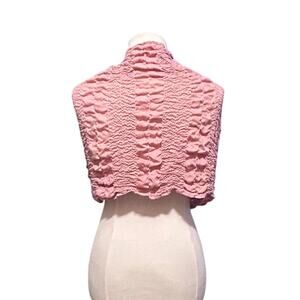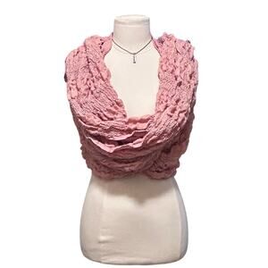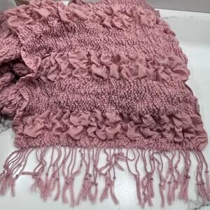 Wrap yourself in cozy elegance with this beautiful pink knit scarf. Featuring a soft, textured design and delicate fringe detailing, this versatile piece can be worn as a scarf, shoulder wrap, or statement accessory for any season. No name brand.