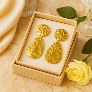 🆕Boho Chic Statement Hammered Earrings 18K Gold Plated Stainless Steel