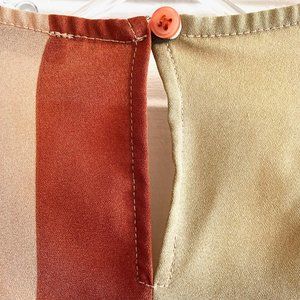 This fun Forever 21 blouse has a beautiful, rich blend of striped earth tone hues and can be dressed up or down to fabulously wear in style! Complement this loose-fitting top featuring a tie-front for a slimming twist with your favorite denim jean and espadrilles for a boho vibe and/or pair with an off-white pant and heels for a more elevated look!
