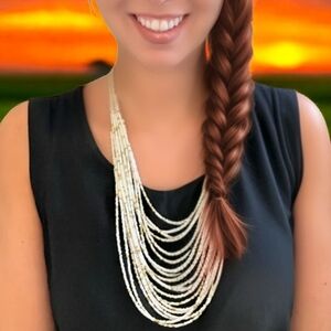 This multilayered necklace is a harmonious blend of earthy elegance and free-spirited charm. The white and golden beads evoke a sense of wanderlust, while the layered arrangement creates a bohemian allure. Perfect for pairing with flowy maxi dresses, denim jackets, or even your favorite swimsuit cover-up. Get ready to channel your inner goddess and radiate positive vibes wherever you go! 🌈🌸🌟