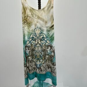 Boho Chic Women's Multicolor Scoop Neck T-Strap Sleeveless Mini Dress Medium