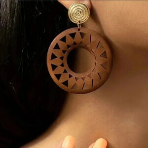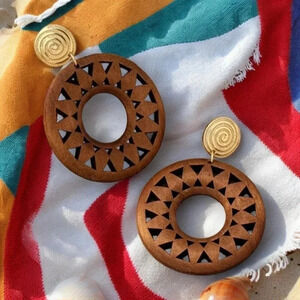 🆕️ Boho Chic Wooden Hollow Dangle Earrings – Retro Flower Power Style 🌿