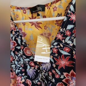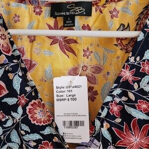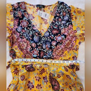 Boho Chic Yellow Paisley Surplice Tie Waist Ruffle Hem Dress Large